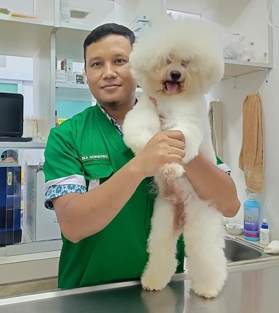 Ia menangani anjing dan kucing di klinik Pet Care dan mempunyai special interest bidang penyakit infeksius di kucing, dan bedah.